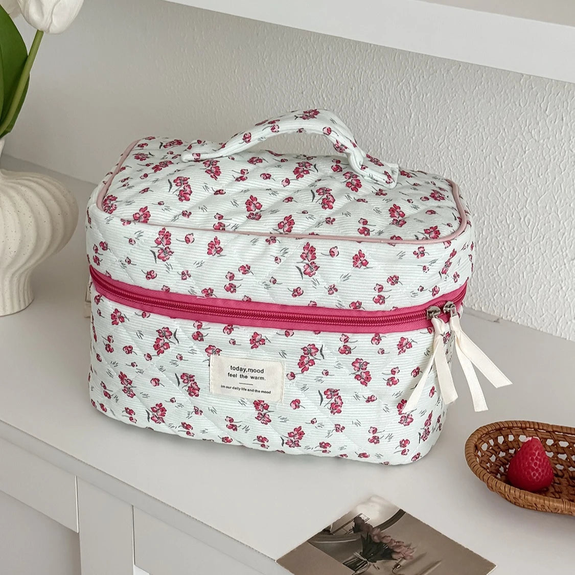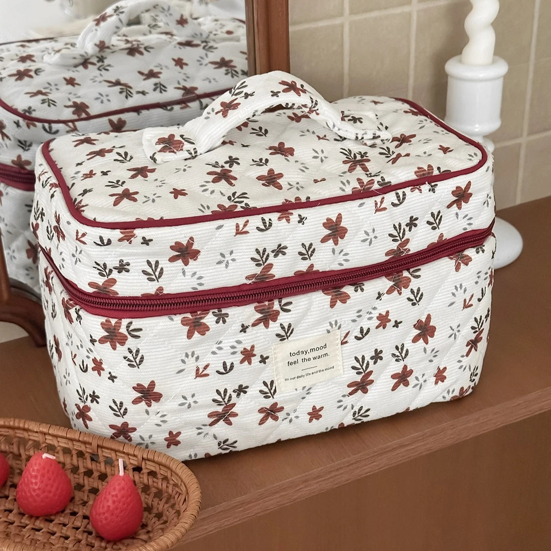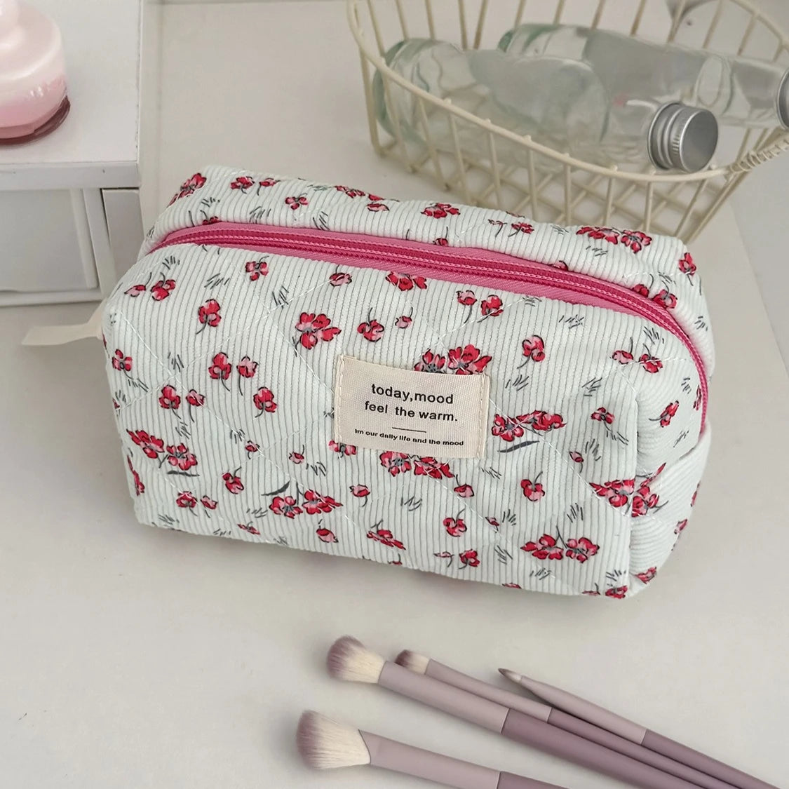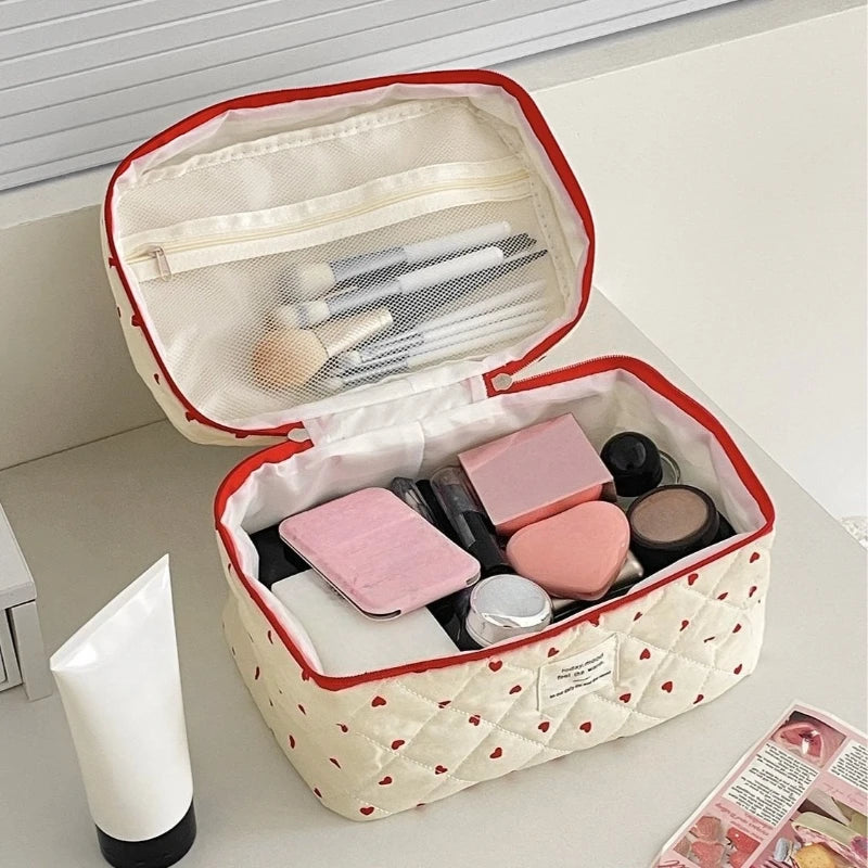 Porta con stile tutti i tuoi cosmetici e accessori di bellezza con questa adorabile borsa in velluto a coste, decorata con un delizioso cuore che aggiunge personalità al tuo look quotidiano. La capienza generosa ti permette di organizzare trucchi, creme e prodotti per l'igiene personale senza compromessi, rendendola ideale sia per l'uso quotidiano che per i viaggi. Realizzata in robusto velluto a coste, questa borsa resiste all'usura frequente mantenendo la sua morbidezza caratteristica. Il design pratico mantiene tutto facilmente accessibile e ordinato, che tu stia andando al lavoro, in palestra o in vacanza. Un accessorio indispensabile che unisce funzionalità e fascino irresistibile.