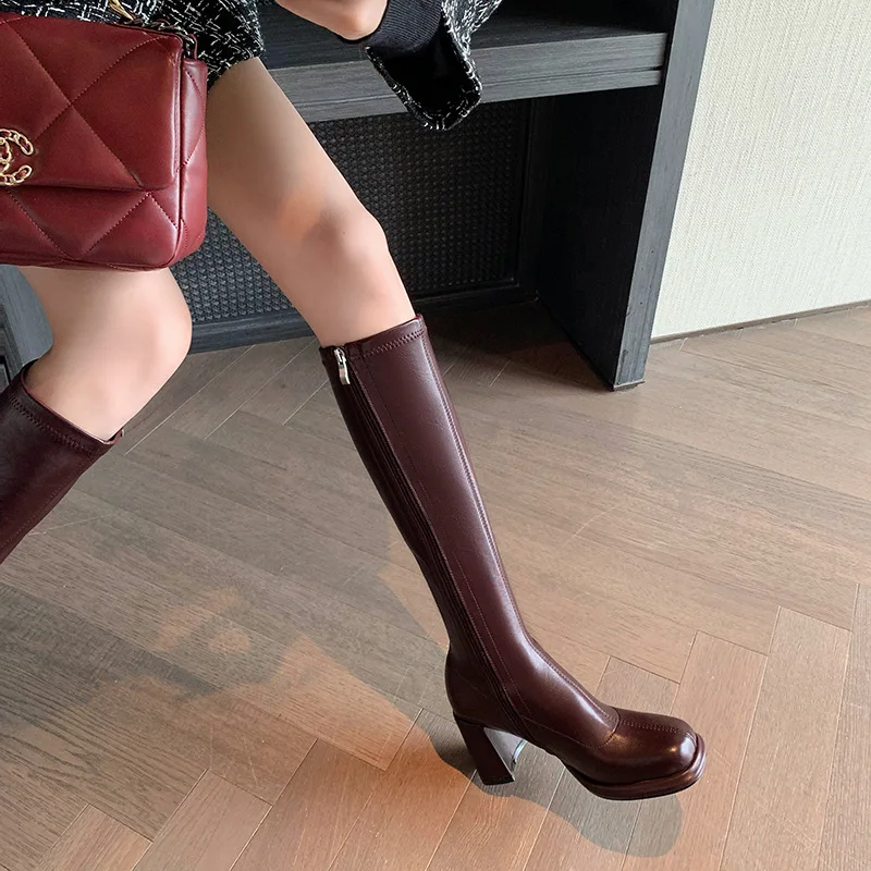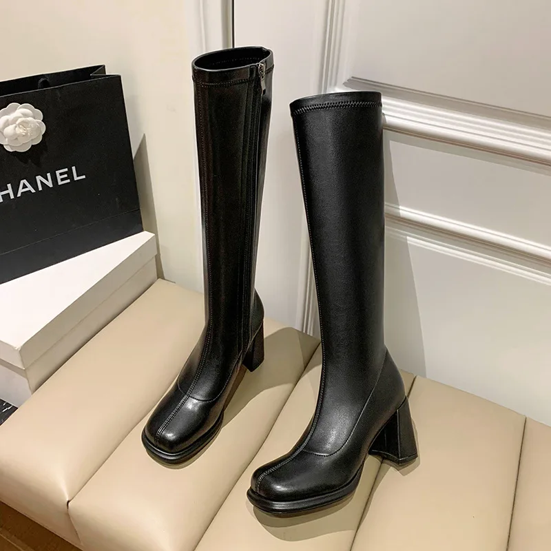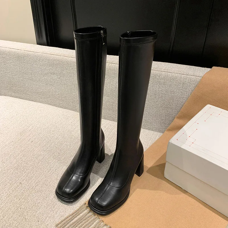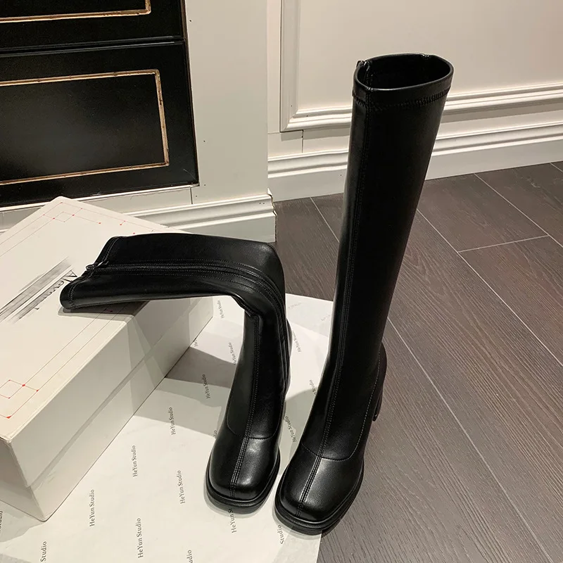 Affronta l'autunno con stile grazie agli stivali tacco quadrato realizzati in morbida microfibra elastica. Questi stivali aderenti valorizzano la gamba offrendo comfort e una vestibilità perfetta. La punta quadrata moderna, unita alla pratica cerniera laterale, combina estetica e funzionalità. Il tacco chunky garantisce stabilità e un tocco di eleganza, ideale per essere indossati tutto il giorno. Disponibili in taglie grandi, sono la scelta perfetta per chi desidera sicurezza e design sofisticato.