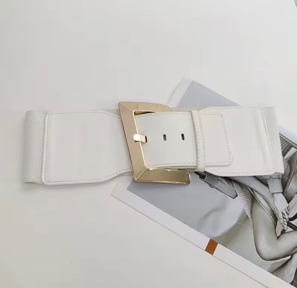 Cintura Larga Donna con Maxi Fibbia Oro – Waist Belt Statement Elegante - Bianco- MUST HAVE (immagine 3)| badpeople.it