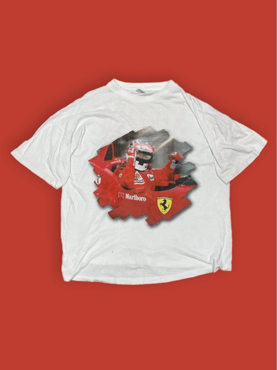 Questa T-shirt vintage XL della Ferrari è semplicemente la migliore! Mostra la tua passione per la Ferrari con questa grafica unica e di alta qualità. Indossa il tuo spirito vincente con stile e comfort. Perfetta per i fan della Ferrari e dell'automobilismo. Non perdere l'opportunità di aggiungere un pezzo unico alla tua collezione!