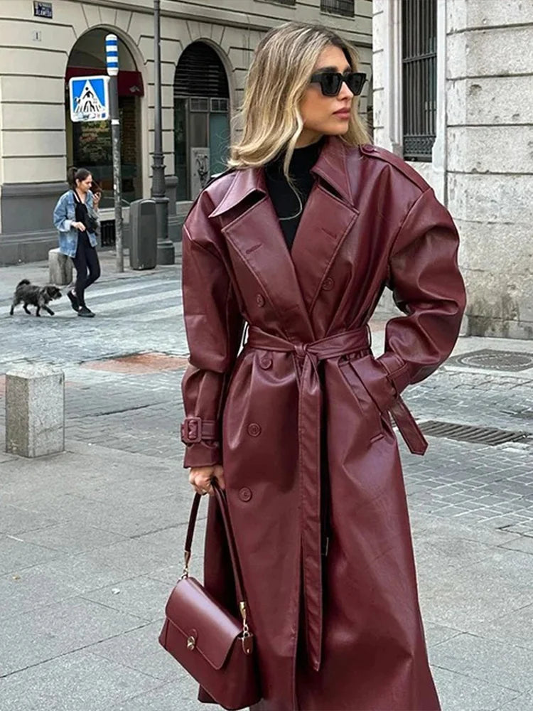 Questo giubbotto lungo da donna in PU leather con rever unisce stile e comodità in un capo versatile. Il design a doppio petto e la chiusura con lacci creano un look vintage dal fascino autentico, mentre la vestibilità ampia offre libertà di movimento e comfort. Perfetto come windbreaker leggero, si adatta facilmente a ogni outfit casual del 2025, diventando un elemento indispensabile per chi cerca eleganza e praticità in un solo capo.
